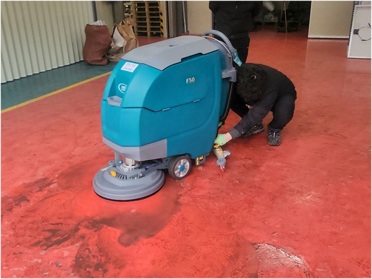 지난번 공장바닥청소 목적으로 엠에스크린의 보행형 습식 바닥청소장비